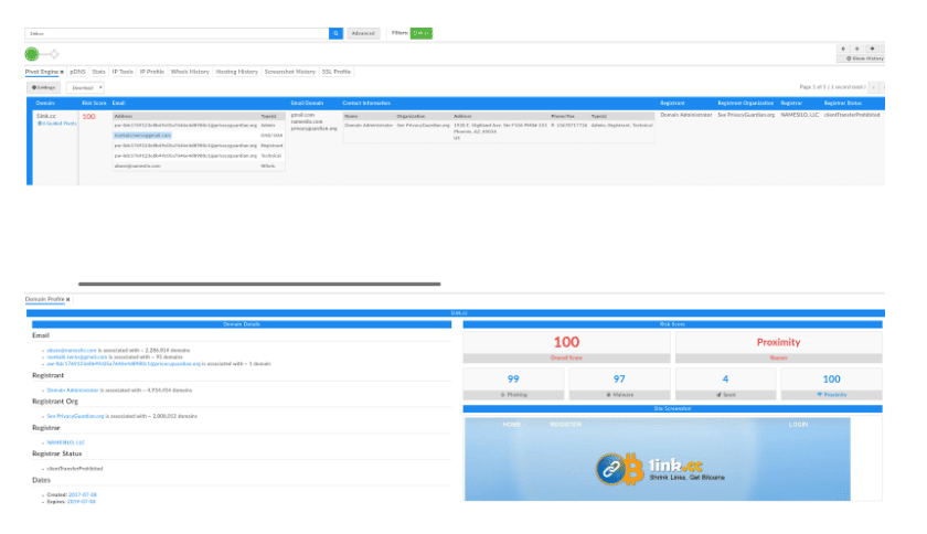 Now if I scroll through the new list of sites Iris has generated for me, I pretty quickly see that globalmaritimetraining[.]net, which is on the same ip address as bandirun.com, shares the same DNS/SOA email address (markabi.twins@gmail[.]com) as 1ink[.]cc.
