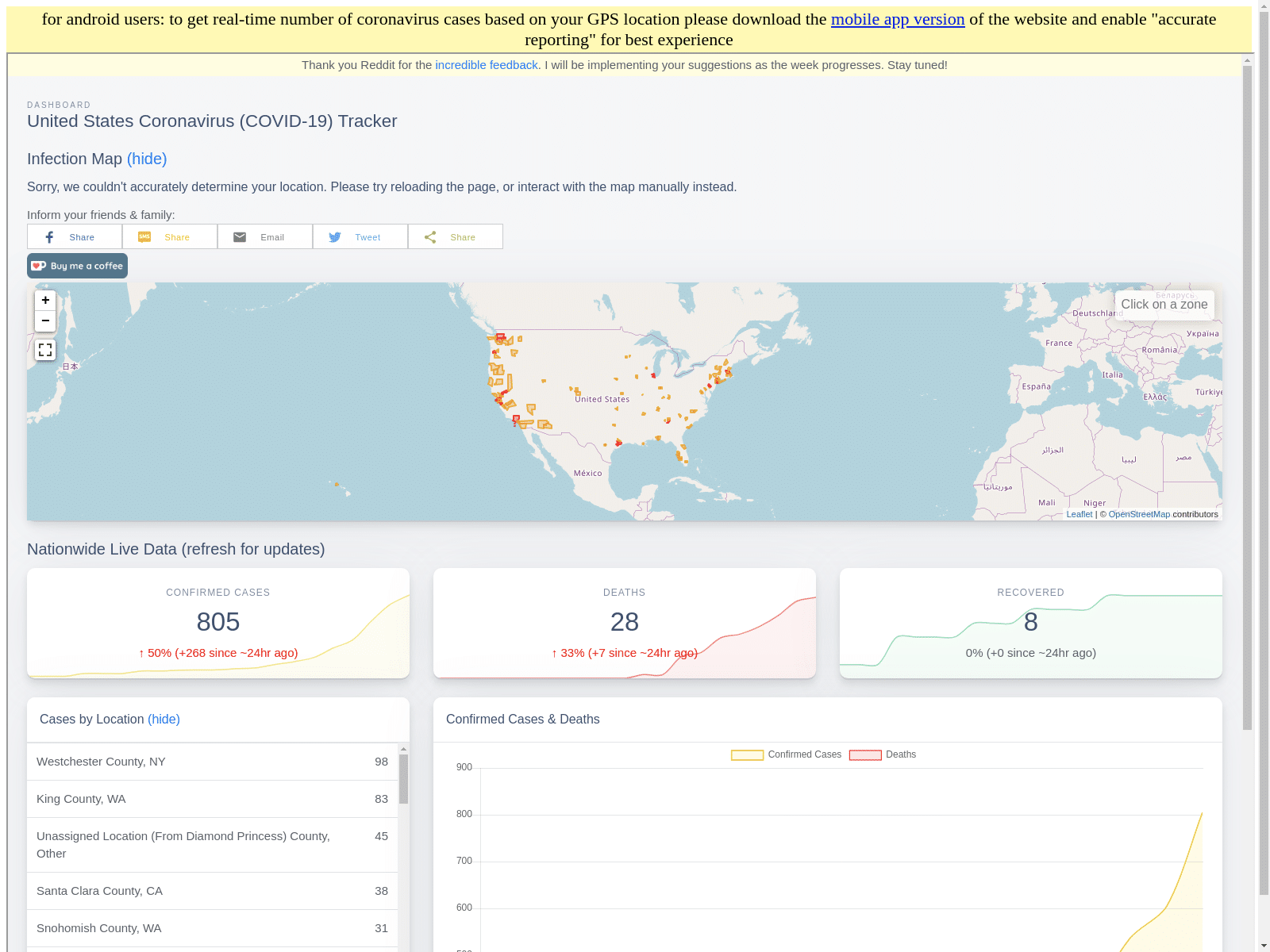 The coronavirusapp[.]site domain initially contained an iframe sourcing directly from infection2020[.]com (a website from an independent developer for tracking US-based COVID-19 news) and a small banner above that encouraged the installation of the malicious application for real time updates.