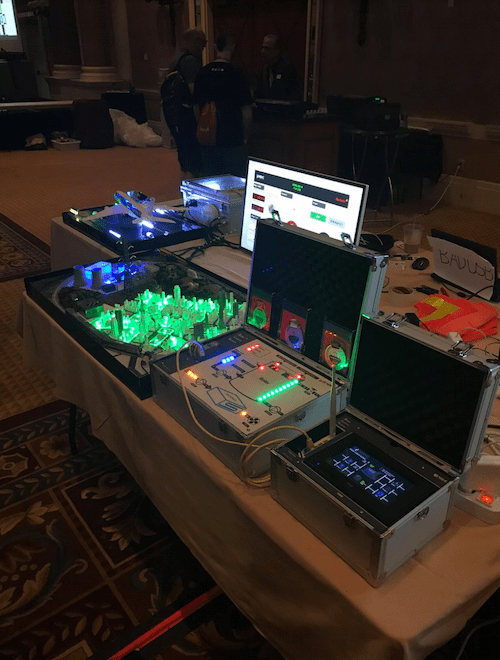 On a table at the front of the room, the CTF organizers had a miniature city, an airplane that appeared to be in flight, several small PLCs, at least 2 real PLCs, and several bluetooth devices (including a Google Pixel and Google Nexus 5x).