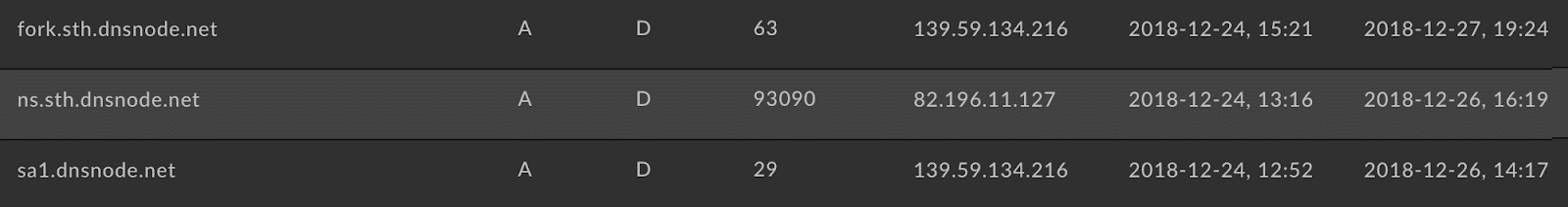 Lastly, we can see that during that same time frame the ns[.]sth[.]dnsnode[.]net server was pointed to another DigitalOcean address of 82.196.11.127. This is the exact same IP address which earlier had hosted the mmfasi[.]com nameservers controlled by those behind SeaTurtle.