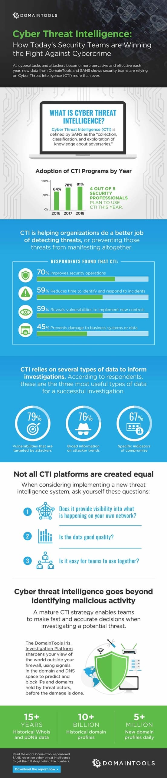 If you haven’t received a demo on how Iris Investigate can help your investigations, let us know. In the meantime, below is a quick look at the data in the full SANS 2018 Cyber Threat Intelligence Survey report: