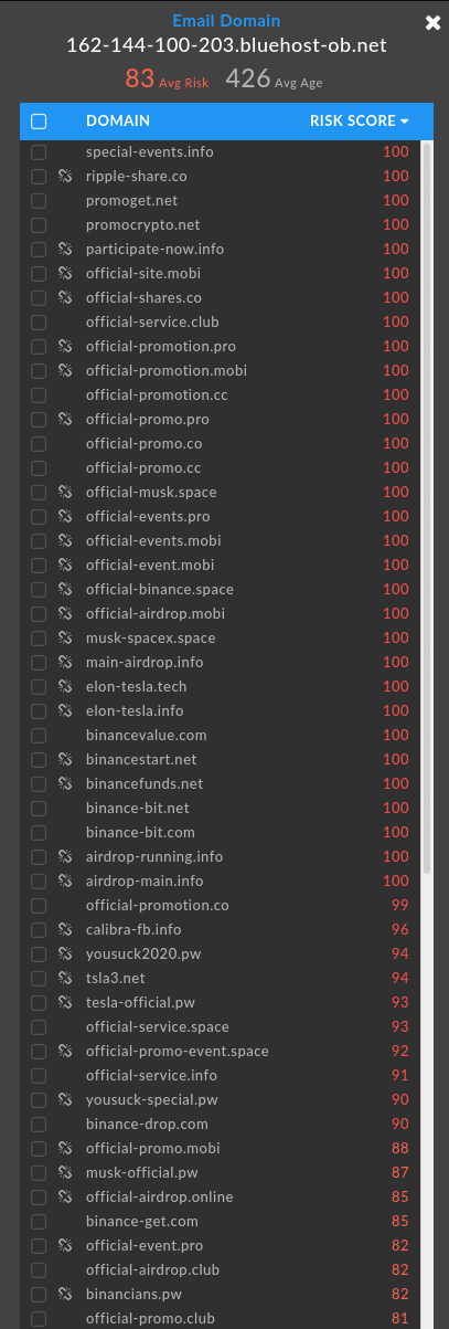 While yet another cluster links back 82 domains to almost two years of these exact kinds of bitcoin scams leveraging Elon Musk and Tesla lures.